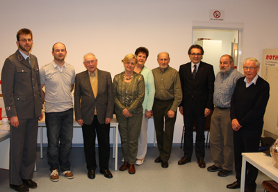 Vorsitzender Joachim Gneist und Bereitschaftsleiter Andrej Lovrencic mit den Geehrten: Willi Schmüser, Margarete Kirschner, Karin Hug, Johann Schafrath, Dr. Stephan Ruß, Rolf Leopold und Adolf Winkler ( von links ).