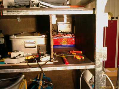 Anbei einige Bilder vom Ausbau der Elektrik und vom ersten Test des Teleskopmastes auf unserem Hof: