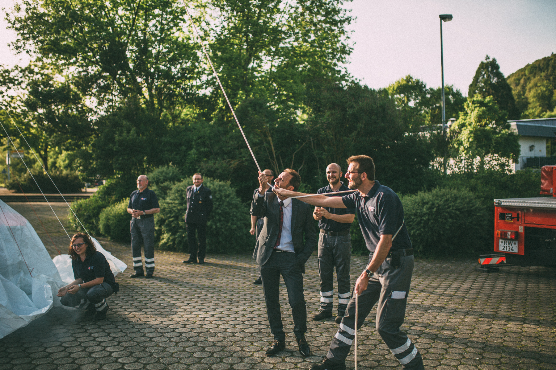 Wir haben unser neues Fahrzeug vor der Neckerhalle enthüllt, doch dies war ein großer Kraftakt für unseren Vorsitzenden und so bat er Herrn Bürgermeister Hermann Acker und den DRK Kreisverbandspräsidenten Herr Engeser um Hilfe. Mit gemeinsamen Kräften haben Sie es dann geschafft und alle Anwesenden applaudierten. Anschließend hatten alle noch die Möglichkeit das Fahrzeug aus nächster Nähe zu betrachten und wir verbachten bei Speis und Trank noch einen schönen Abend mit unseren Gästen.